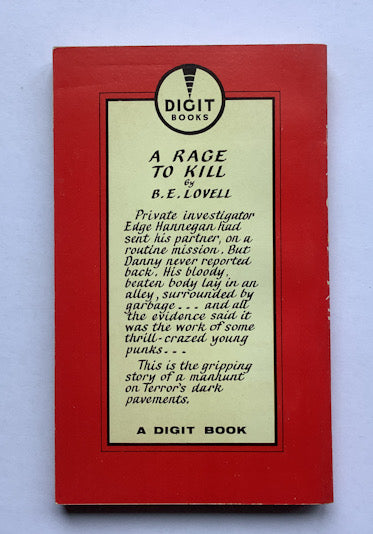 A RAGE TO KILL British pulp fiction B.E. Lovell 1957
