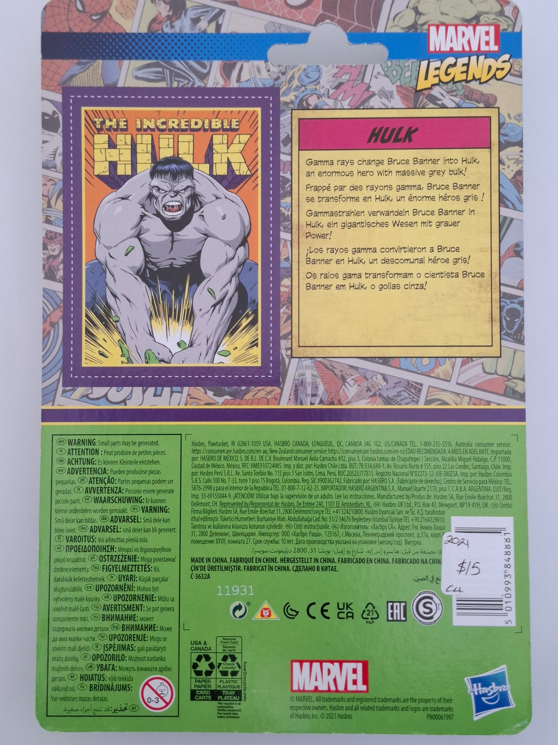 Gamma rays change Bruce Banner into Hulk, an enormous hero with massive grey bulk! Collect all the Marvel Legends by Kenner.