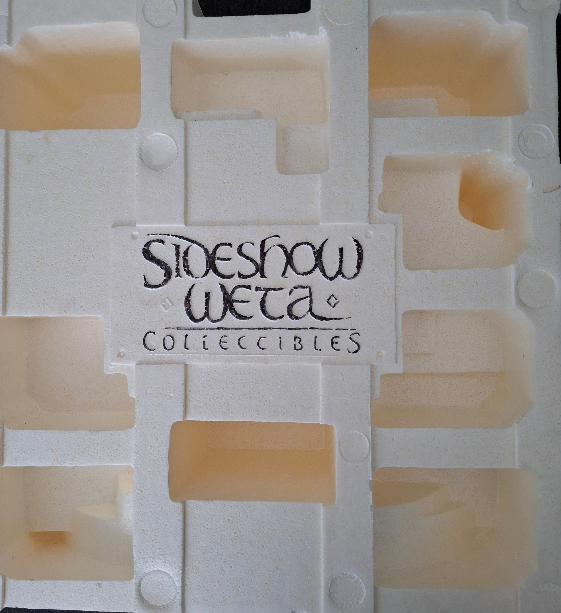 Weta, in collaboration with Sideshow Collectables and New Line Cinema, released a limited edition Lurtz statue, with only 5000 pieces produced worldwide. Sculpted by Eden Small and crafted by the same talented artists and technicians at Weta Workshop who worked on the films, each collectible reflects an exceptional level of detail and authenticity. Creating the prototype alone requires between 400 and 500 hours of design, sculpting, model-making, molding, and painting. This particular piece, number 1865 of 5000, is a rare and highly sought-after treasure for any fan of The Lord of the Rings.