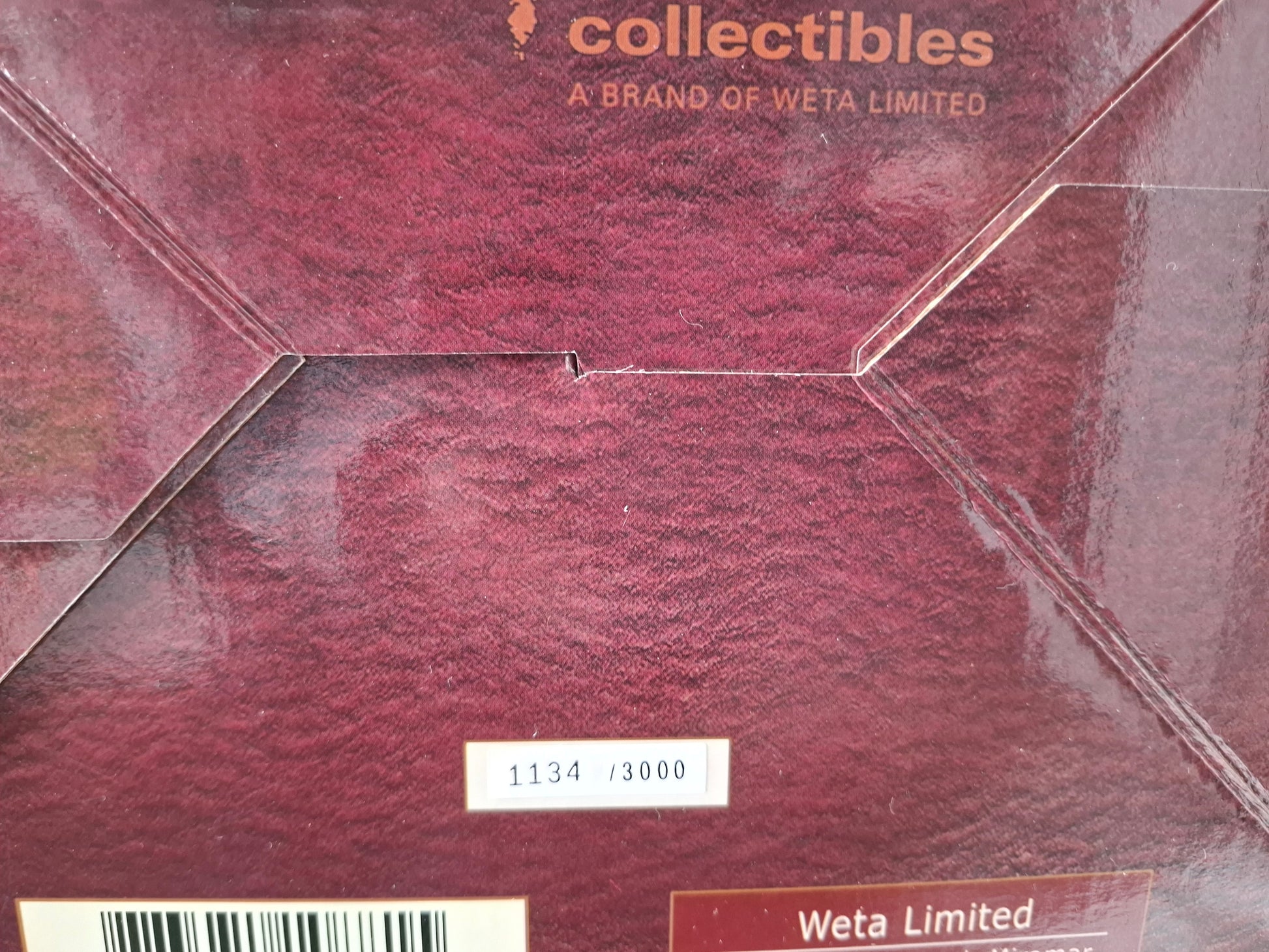 Item Size: approx. 15 inches H (38cm) x 4 inches W (10cm) x 12 inches L (30.5cm) and comes in it's original Weta shipping carton.